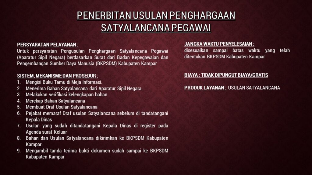 Penerbitan Usulan Penghargaan Satya Lencana Pegawai